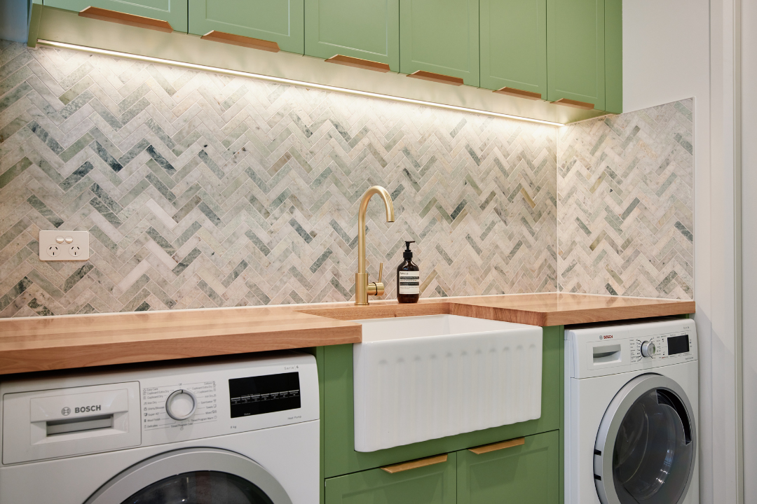 From there, we brought our clients’ vision to life through a cohesive interior design that blends modern comfort with subtle country charm. A soft green palette flows throughout the home, complemented by custom feature walls in the entry and living spaces. The transformation included a full internal renovation — complete with a new laundry, ensuite, and master bedroom — each designed with function and style in mind.